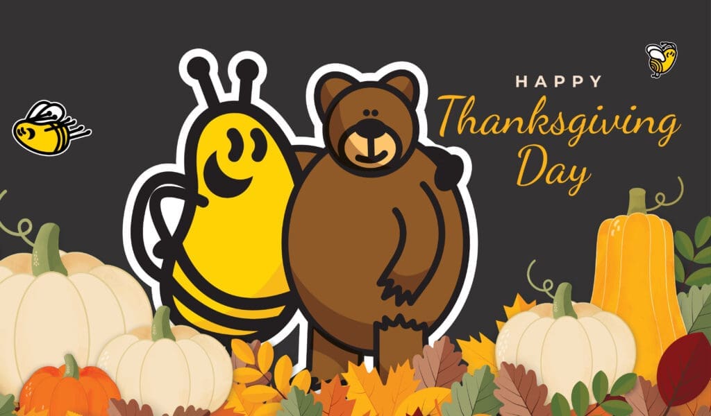 Happy Thanksgiving from Buddy Bee and Watson Bear