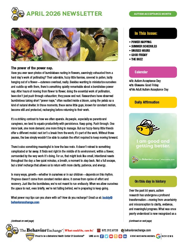 As a family helping families, The Behavior Exchanges looks for opportunities that will make the biggest impact and produce life-changing outcomes – for clients, families, and even for team members. Tammy believes that if a team, a family, a community takes care of each other, the possibilities are endless and the relationships built along the way can make life more enriching and challenges easier to navigate. You could say her goal has been to build a kind of utopia full of support, love, and expertise that brings the best services possible to the community and ensures more families have access to those services.